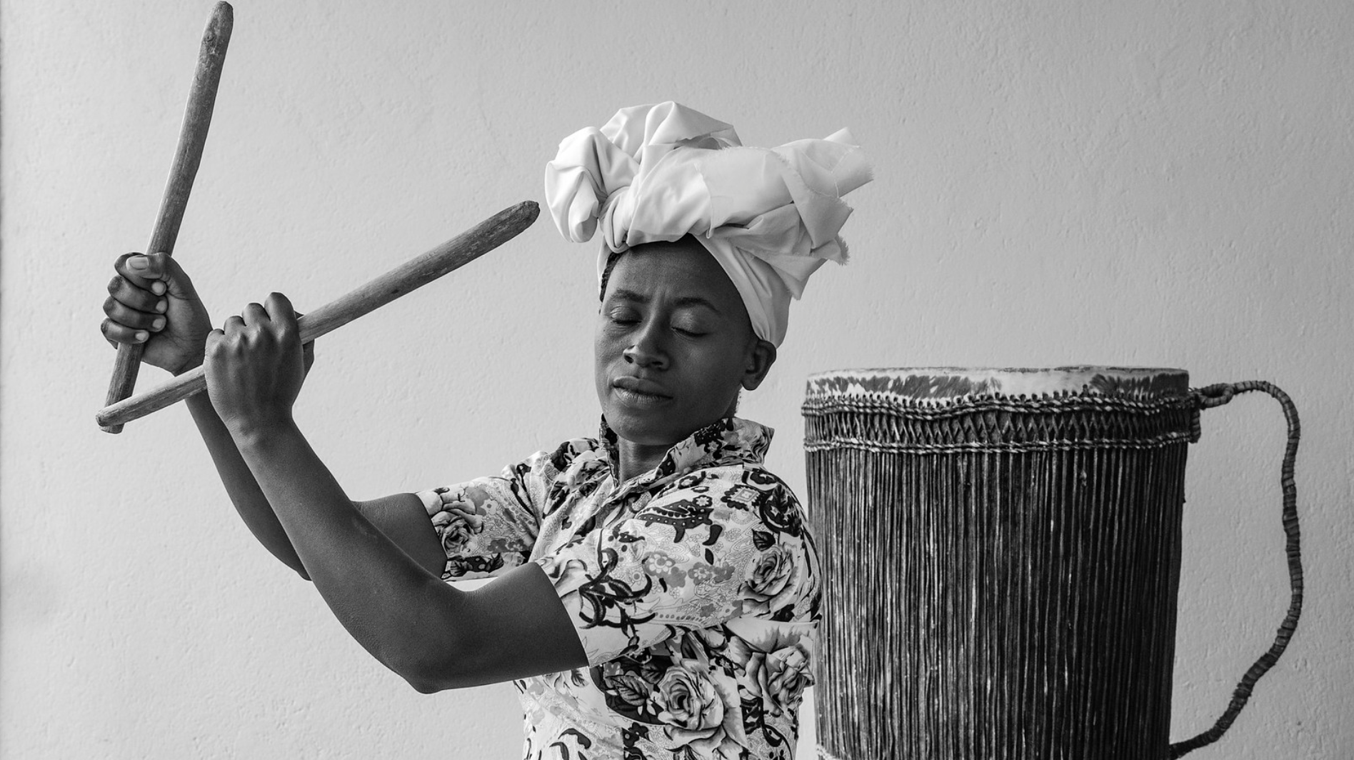 Ingoma Nshya was founded in Huye, Rwanda in 2004 by a group of women from all sides of the conflict, who were looking for a way to heal after the trauma of genocide, and move forward together. They chose drumming, a taboo activity for women at the time, and an activity synonymous with empowerment. Over the course of the next 20 years, Ingoma Nshya broke new ground for women in Rwanda, and East Africa, and, in so doing, brought drumming back to a country from which it was nearly eradicated. They are now considered the best drummers in the country. Mukanyandwi is a core member of the company.