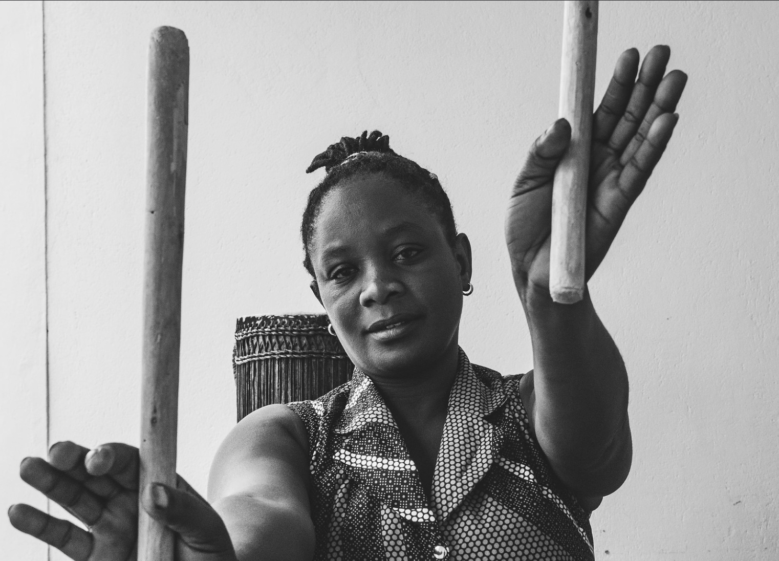 Ingoma Nshya was founded in Huye, Rwanda in 2004 by a group of women from all sides of the conflict, who were looking for a way to heal after the trauma of genocide, and move forward together. They chose drumming, a taboo activity for women at the time, and an activity synonymous with empowerment. Over the course of the next 20 years, Ingoma Nshya broke new ground for women in Rwanda, and East Africa, and, in so doing, brought drumming back to a country from which it was nearly eradicated. They are now considered the best drummers in the country. Uwizerwa is a core member of the company.